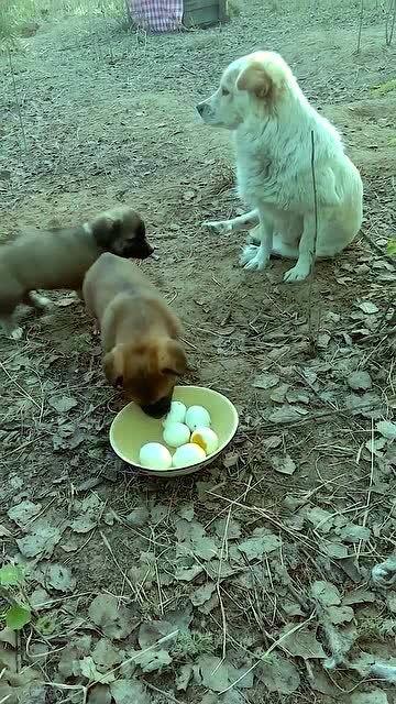 3. “鸡蛋侦探”:有些小狗在发现鸡蛋后,会四处寻找,仿佛在玩“鸡蛋侦探”的游戏。